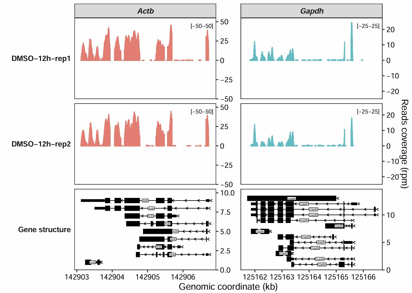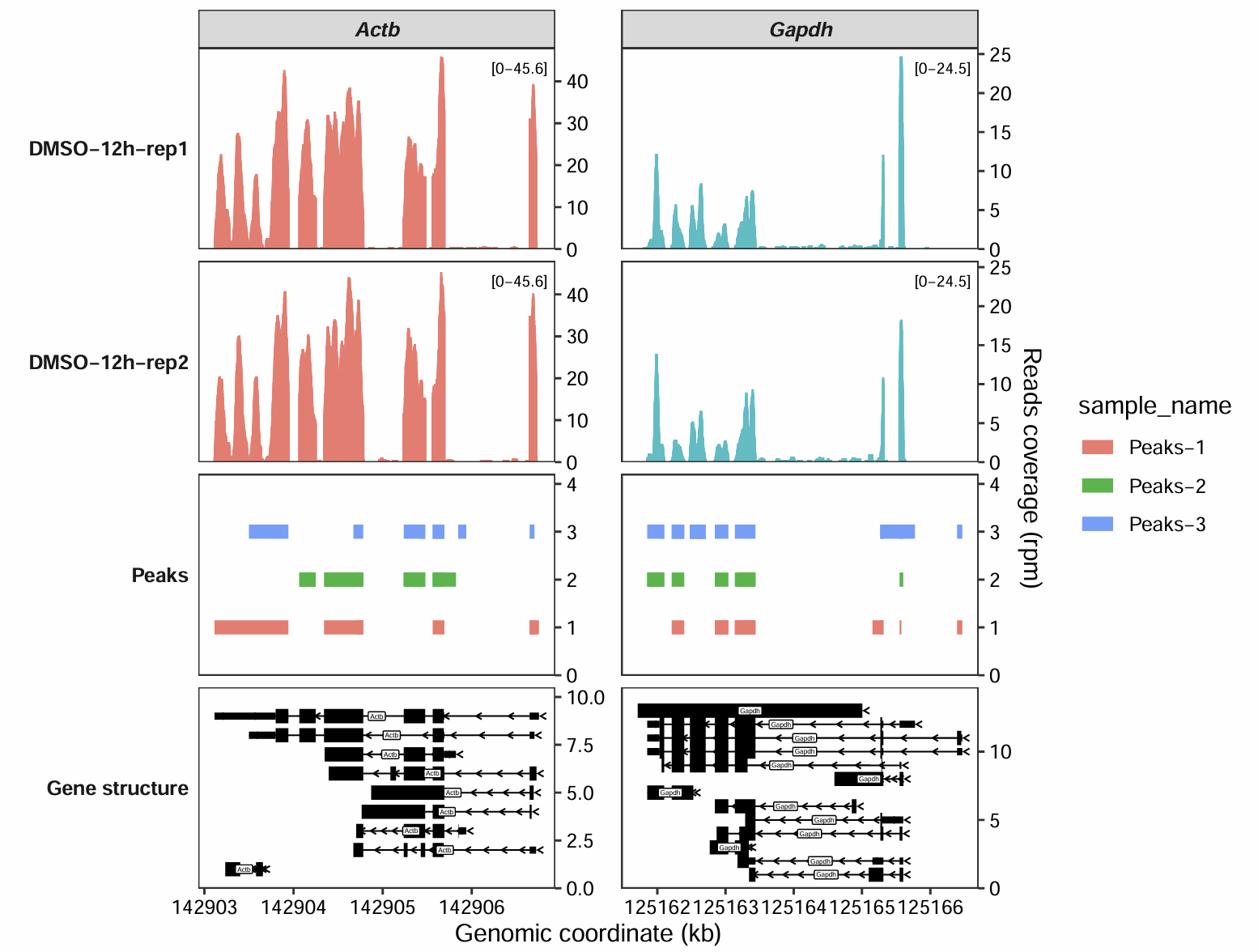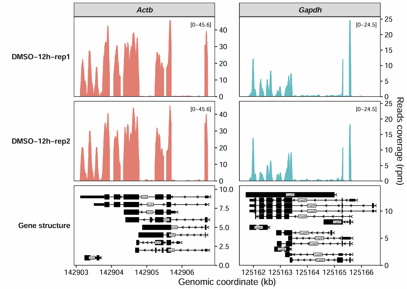 target_gene = c("Actb","Gapdh"))7 Coverage plot
